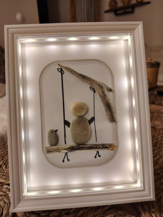 Cadre décoratif artisanal en galets LED