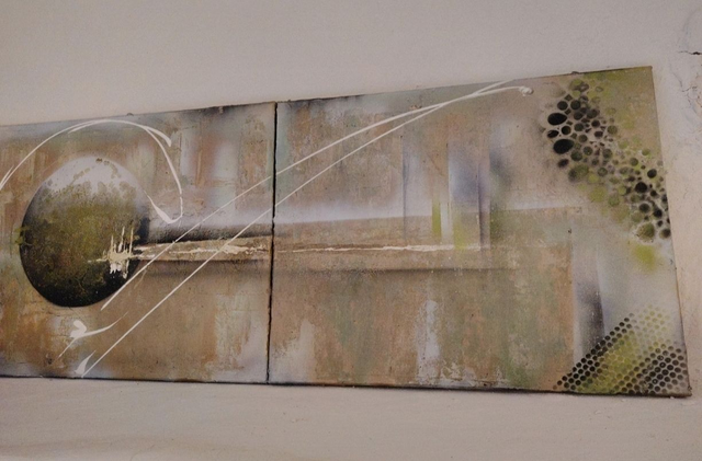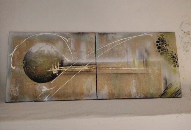 Tableau diptyque abstrait œuvre originale composé de deux toiles dimensions totales 100 x 40 cm finition vernis et signé par la main de l'artiste