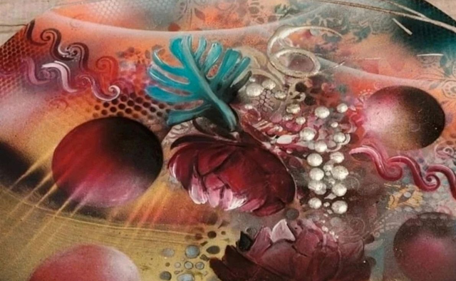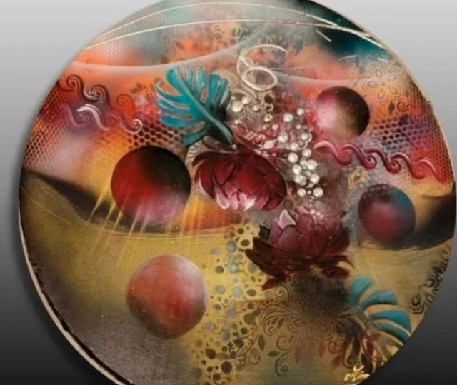 Tableau abstrait moderne peinture sur toile ronde de 50 cm de diamètre